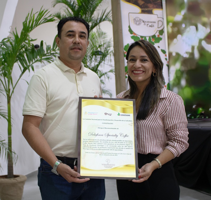 Delafinca Specialty Coffee fue reconocida por la Comisión Nacional para la Transformación y Desarrollo de la Caficultura (CONATRADEC) por su destacado aporte al desarrollo del café nicaragüense y por su trayectoria de excelencia en competencias nacionales e internacionales.