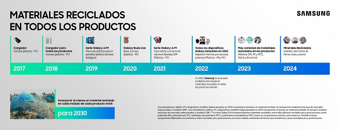 Entre las principales acciones se encuentra el programa One Stop Experience[1], que ofrece la recolección de dispositivos antiguos al momento de la entrega de uno nuevo, garantizando una disposición adecuada y una logística eficiente; los puntos de recolección disponibles en los Smart Centers (centros de experiencia y servicio de Samsung), donde cualquier consumidor puede realizar el descarte correcto de residuos electrónicos. También está el programa Trade In o Eco Canje, que otorga descuentos en la compra de nuevos productos mediante el intercambio de dispositivos usados. Todas estas iniciativas buscan fomentar el reciclaje de electrónicos, reducir los impactos ambientales y promover la reutilización de materiales, lo que refuerza el compromiso de la empresa con la economía circular y con el reciclaje de residuos electrónicos.