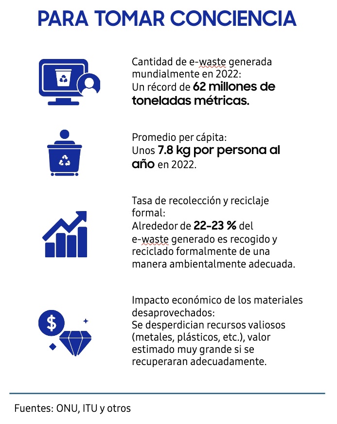 Cada 14 de octubre se conmemora el Día del E-Waste para concienciar sobre los desechos electrónicos (aparatos que ya no se usan o que han quedado obsoletos) y los impactos ambientales, sanitarios y económicos que conllevan. En Latinoamérica, este desafío crece cada año, pero también abre la puerta a nuevas oportunidades de economía circular y responsabilidad empresarial.
