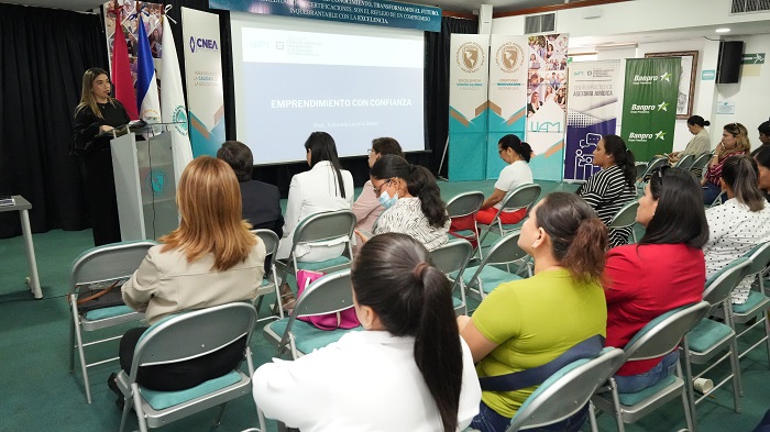 Una vez más, Banpro Grupo Promerica y la Universidad Americana (UAM) se unen para apoyar a mujeres emprendedoras del país, quienes se reunieron en el auditorio Rubén Darío de esta Alma Mater, para participar en la conferencia titulada “Emprende con confianza: Aspectos legales para el crecimiento empresarial”, impartida por profesionales del derecho de esta casa de estudios superiores.