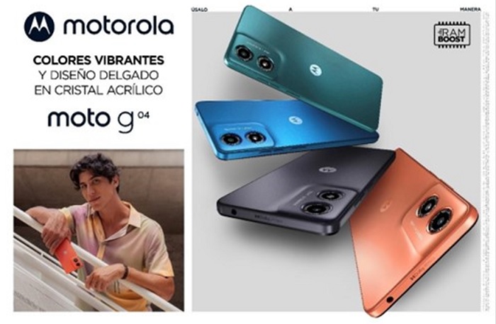 - El moto g04 estará disponible en colores Negro cósmico, Verde aurora, Azul satinado y Naranja amanecer, disponible a través de los distribuidores autorizados.