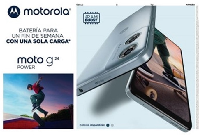 - El moto g24 power estará en colores Azul medianoche y Azul glaciar, disponible a través de los distribuidores autorizados.