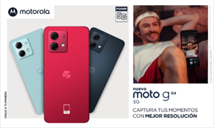 - El moto g84 5G estará disponible en colores Negro espacial, Azul Ártico y Viva Magenta, disponible a través de los distribuidores autorizados.