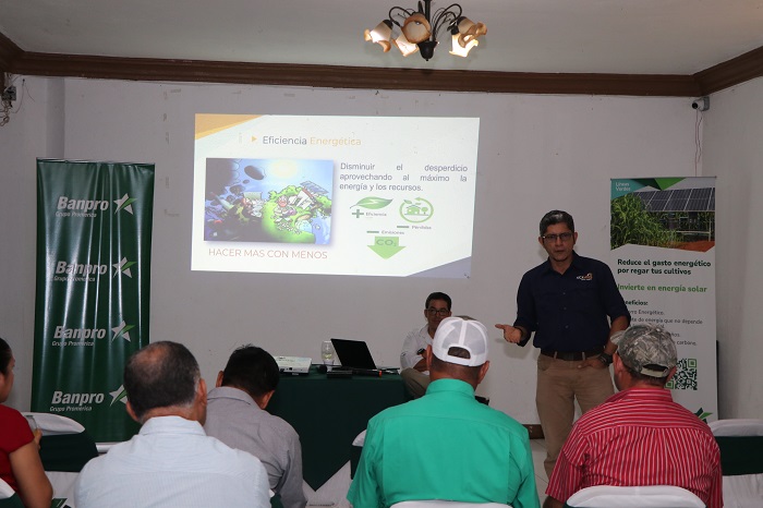 Impulsar el riego a través de bombeo solar en el sector agrícola es uno de los objetivos de Banpro Grupo Promerica, para que los productores no se vean afectados por el cambio climático y a la vez tengan ahorros significativos en su facturación eléctrica, así lo confirmó el Ing. Jorge Incer, gerente de sostenibilidad de la entidad bancaria, durante una reunión con productores del sector de arroz del municipio de Sébaco, Matagalpa.