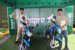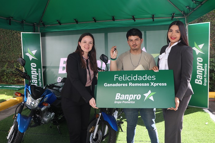 El joven Nixar Reyes recibió las llaves de la moto en representación de su abuela Claudia Reyes. Ambos premios fueron entregados por la jefa de remesas de la entidad bancaria, Lcda. Patricia Icaza. Los ganadores se mostraron muy contentos y agradecidos con Banpro por diseñar promociones que beneficia a los clientes.