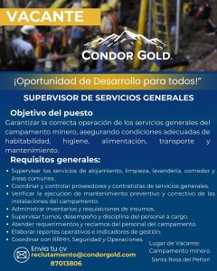 📍 Súmate a un equipo, Somos Condor Gold. ¡Oportunidades de Desarrollo para todos! ¡Orgullo Cóndor!