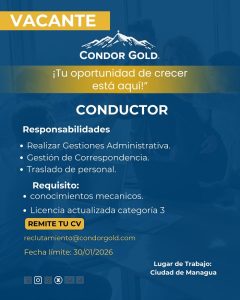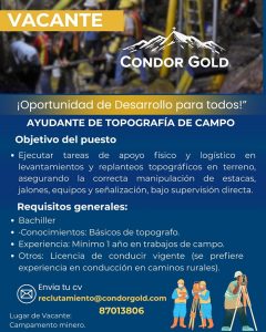Si estás interesado(a), envía tu CV actualizado al correo: reclutamiento@condorgold.com