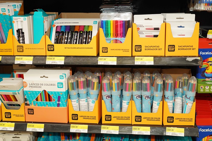 El surtido escolar incluye lapiceros, colores, carpetas, borradores y una amplia variedad de útiles, con una mezcla de marcas propias como Pen + Gear y Nottas, que brindan economía y valor agregado, además de marcas líderes como BIC, Facela y Scribe, garantizando calidad y opciones para todos los presupuestos.