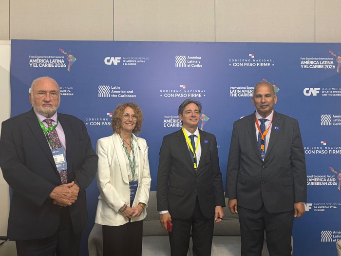 Ibrahim, Díaz-Granados y Asinelli se reunieron en el marco del Foro Económico Internacional de América Latina y el Caribe 2026, organizado por CAF en Ciudad de Panamá, al que asistieron Jefes de Estado y de Gobierno, ministros, representantes del sector privado y de organismos internacionales, y autoridades en los campos de la ciencia, las políticas públicas y las finanzas.