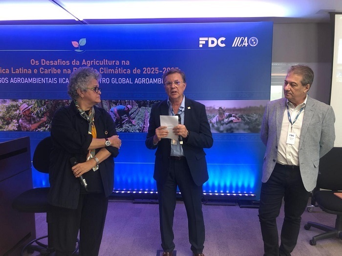 El debate, organizado por el IICA y el Centro Global Agroambiental de la Fundação Dom Cabral (FDC), fue coordinado por la Asesora Especial de la Dirección General y sherpa del IICA en las COP29 y COP30, la ex ministra de Medio Ambiente de Brasil, Izabella Teixeira, y Marcello Brito, coordinador del Centro de la FDC y Director Ejecutivo del Consorcio Amazonia Legal.